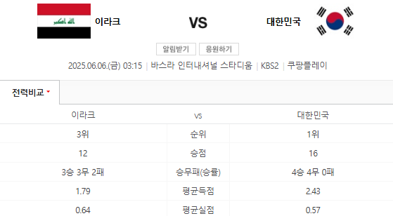 이번 이라크와의 경기는 쿠팡플레이에서 단독으로 중계되며, 본 경기에 앞서 프리뷰 쇼를 통해 선발 명단, 전략 포메이션, 관전 포인트 등도 미리 확인하실 수 있답니다.