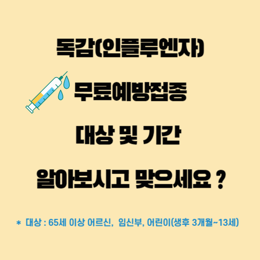 독감 무료 예방접종 대상과 기간은 다음과 같습니다.