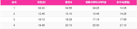 ● 달성 5번 버스 이용 : 유천교 2 → 용연사 → 현풍시외버스터미널 → 유가사(종점)