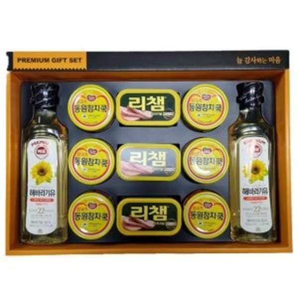 누구나 식품 또는 생필품으로 언제나 활용이 가능하기 때문에 스팸, 참치 통조림, 식용유 및 오일 세트를 선물하면 좋습니다.