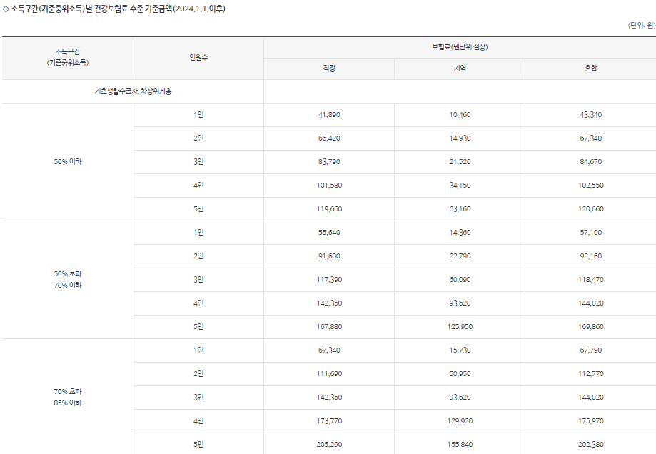 2024년 소득구간(기준중위소득) 별 건강보험료 기준금액 보러 가기 ☜