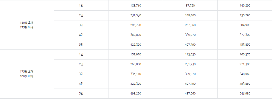 - 기준중위소득 100% 초과 200% 이하 가구로서 의료비 부담이 큰 경우 개별심사를 함.