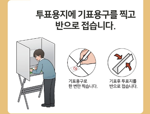 3. 기표소에 비치된 용구로 기표 후, 회송용 봉투에 넣어 봉함