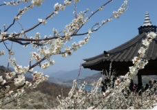 흰 매화꽃과 푸른 강물이 대비되어 사진 촬영 명소로 유명합니다.