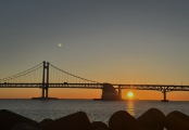 태양이 다리 위로 천천히 올라오는 순간, 붉은빛이 바다와 도시를 물들이는 장관을 경험할 수 있어요.