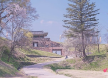 - 성곽길 따라 펼쳐진 벚꽃 터널